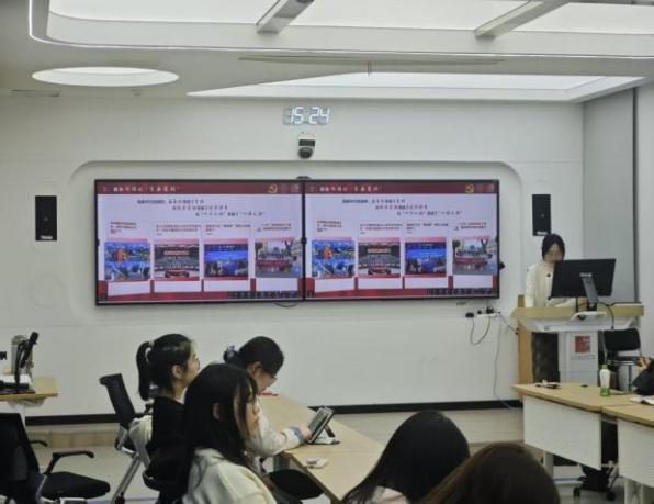 在213教室开展“党的二十届四中全会精神专题学习暨党课研讨”红心领航思享会,邀请马克思主义小妲己直播